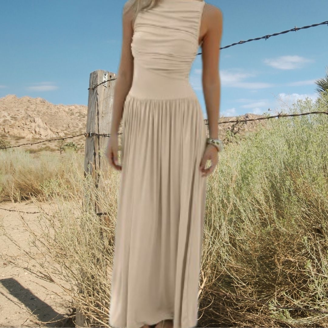 Sirena Maxi Dress – Ruched bust, fitted midriff, and shirred skirt say nothing about this dress is plain jane. Perfect for after a day in the sun or an evening out with some bling to accessorize.