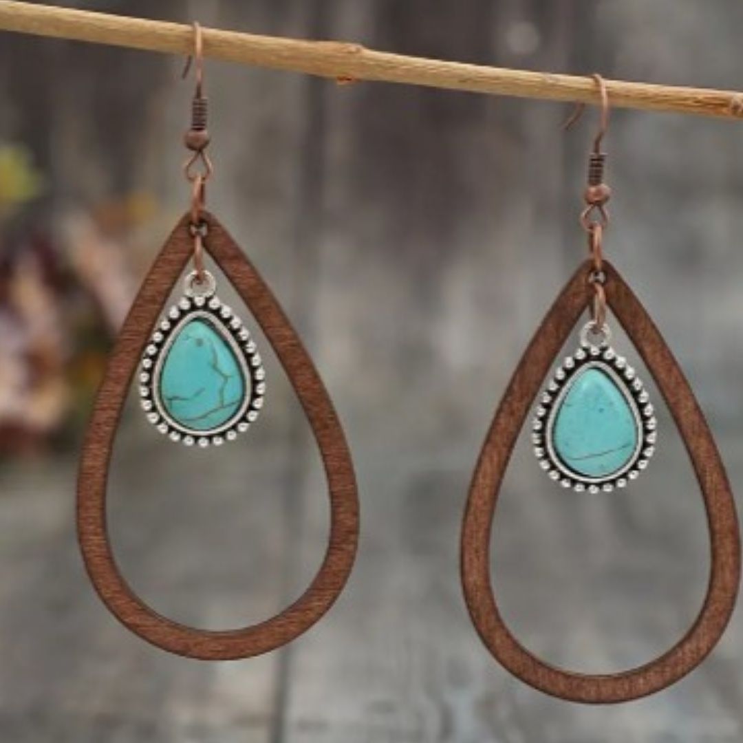 Turquoise stone drop wire hook earrings